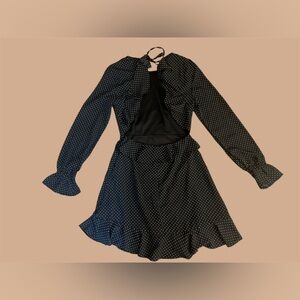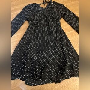 DO+BE Black Polka Dot, Ruffle Sleeves, Flare, Backless Dress, Size S