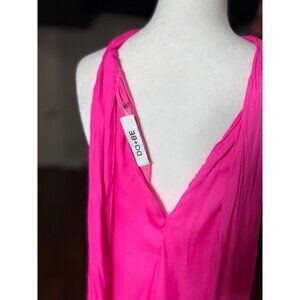This captivating hot pink halter top by DO+BE is expertly crafted for those who appreciate the finer things in life. Made from sumptuous silk, this blouse drapes beautifully, providing a luxurious feel against the skin. The vibrant color makes a bold statement, while the halter neckline elegantly frames the shoulders. Ideal for adding a touch of sophistication and vivacity to one’s attire, this top is an essential piece for those who embrace style and comfort in equal measure.