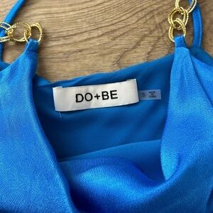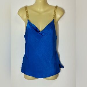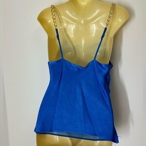 DO+BE Blue Silky Tank Blouse with Gold Chain Straps size S