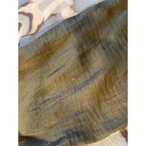 It might look green on the pictures, due to the silky texture it as, it could look like olive dark green or gray in person.