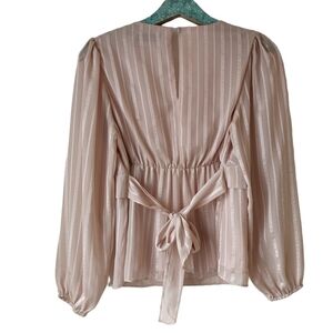 DO+BE Chiffon Striped Blouse V Neck Sheer Sleeves Champagne Revolve