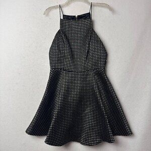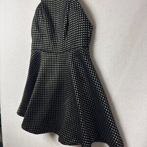 DO+BE Dress Womens Large Black Gold spaghetti strap flare swing skater metallic