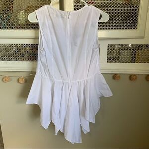 Excellent pre-Loved condition. No flaws or imperfections. Add a touch of elegance to your wardrobe with this DO+BE tank top in size small. Featuring a beautiful floral pattern and asymmetrical sleeve design, this tunic-style top is perfect for any occasion. The white color and embroidered accents enhance the overall look, making it a must-have for any fashion-forward woman.