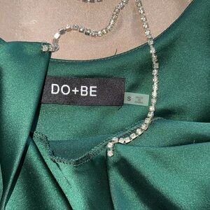 DO+BE Emerald Satin Camisole Rhinestone Spaghetti Strap Gorgeous Jewel Tone Cami