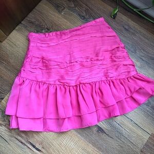 Chic fuchsia mini skirt with playful ruffles. Perfect for a bold fashion statement.