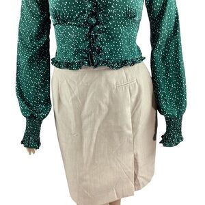 DO+BE Green Polka Dot Ruffle V-Neck Blouse Long Sleeve Size L