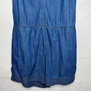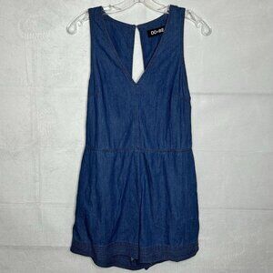 DO+BE Lightweight Chambray Blue Denim Romper Open Back Pockets Sleeveless Size M