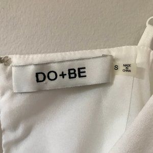 DO+BE White Peplum Tank with zipper back and woven detail on chest. Size Small. Adjustable Straps.