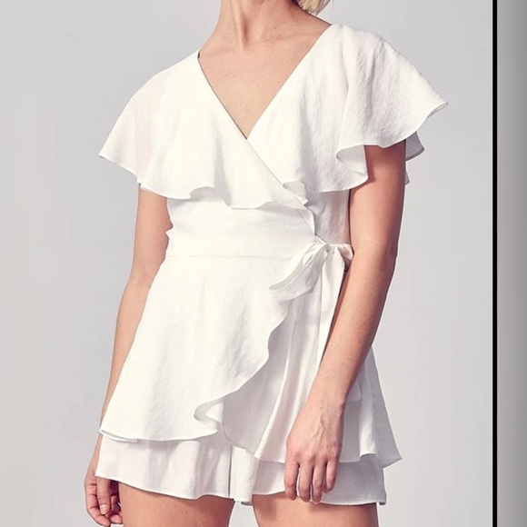DO+BE White Ruffle Wrap Romper – Size S (New with Tags)