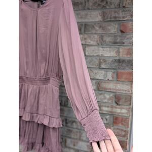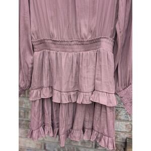 Long Sleeve, Short Dress, Dusty Rose, Ruffle Skirt, Scoop Neck, Elastic Waist, Elastic Cuffs, Button Back Neck