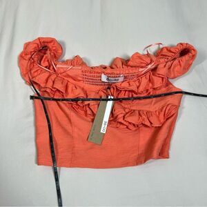 DO+BE Women's Size Medium NWT Orange Ruffle Smocked Back Cropped Off Shoulder Top New With Tags