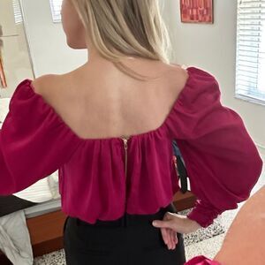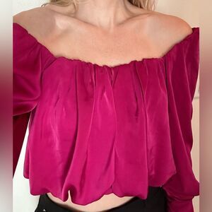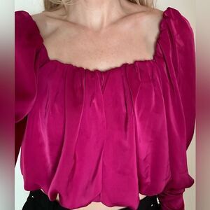 EUC worn once Do+Be revolve magenta hot Barbie pink bubble blouse crop top small s