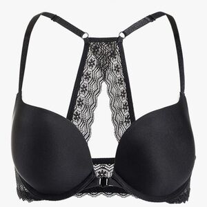 DOBREVA Women's Push Up Bra Racerback Front Closure Bra Plunge Underwire Tshirt Padded Lace. Discover the perfect blend of comfort and elegance with this sleek black bra, ideal for any occasion. Pushup plunge bras help to enhance your sexy celavage