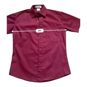 Doc & Amelia Men’s formal shirt, maroon (dark red) color, short sleeves, buttons down,pocket detail. Size Small, 85% polyester, 35% cotton. Measurements: neck to shoulder 7 in., sleeve length 9.5 in., shoulder to shoulder 19 in., chest 44 in., front length 30.5 in., hem 43.5 in., sleeve cuff 15 in. New, no tag.