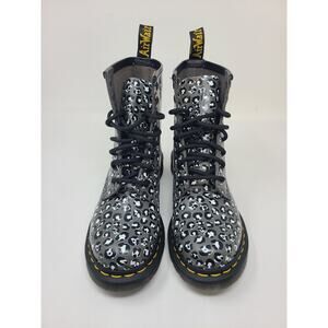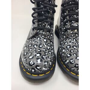 DOC DR MARTENS GUNMETAL 1460 LOUD LEOPARD Leather Boots Sz 6 Grunge Whimsigoth UK 4 NEW