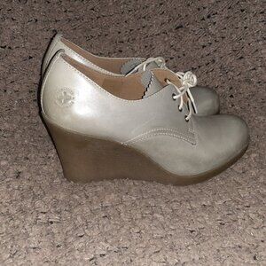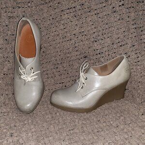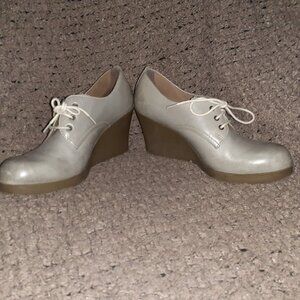 DOC DR. MARTENS-Mimi Wedge-Grey Smooth Leather-Slightly Distressed Look-Sz 8-EX