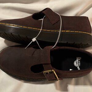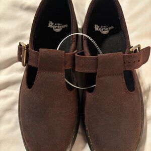 NWOT, NEVER WORN. Doctor Martens T-Bar Long Napped Suede Unisex Mary Janes in Dark Brown.