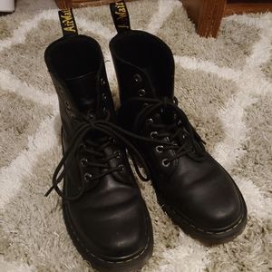 Black Doc Marten boots. Very comfortable, worn several times, but no damage. These are the best boots ever but are too big for me :(