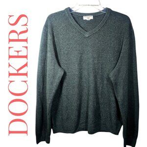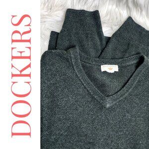 DOCKERS FOREST GREEN V-NECK ACRYLIC SWEATER GOLF PREPPY MINIMALIST, MEN’S LARGE