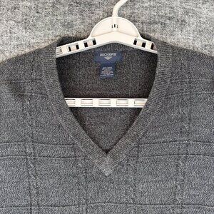 DOCKERS Knitted Men's Sweater, V-Neck, Gray color 2X/2XG, 100 % Acrylic, Made in China, Pre owned, great condition, geometric pattern