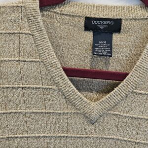 DOCKERS Men's Sweater Size M V-neck Tan Pullover Textured Knit Workwear Office