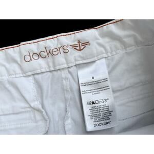 DOCKERS Womens Size 8 White Cotton Blend Flat Front Cropped Capri Pants