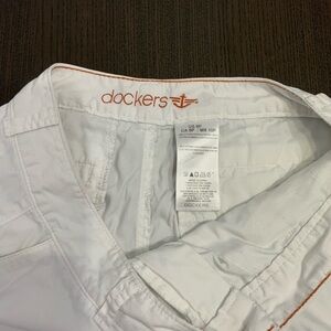DOCKERS Womens Size 8 p. White Cotton Blend Flat Front Bermuda Midi Shorts