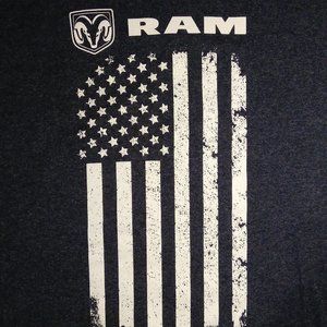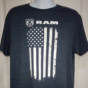 DODGE RAM TEE - BLUISH-GREY w/ WHITE PRINT, US FLAG IMAGE, BREATHABLE FABRIC FOR COMFORT, NO DAMAGE, LIKE NEW, READY TO SHIP TO YOU NOW!