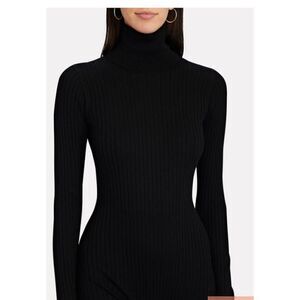 Discover the allure of the DODO BAR OR black bodysuit, a stunning piece that effortlessly combines elegance and edge. Crafted for women who love to make a statement, this one-piece features a ribbed pattern and dazzling rhinestone chains that accentuate its open back design. Made from a luxurious blend of polyester, nylon, acrylic, and wool, it offers both comfort and style. Perfect for glamorous evenings, cocktail parties, or a night out on the town. This pre-owned piece has been worn once and is in excellent condition.
