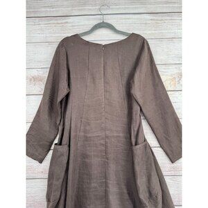 Item: DODO Korea Linen Flare Dress Women's Size 12 Brown Pockets