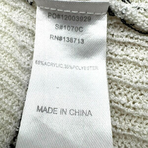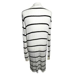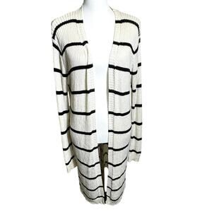 DOE & RAE Women Medium Cream Black Stripe Long Open Cardigan Sweater Ribbed Knit