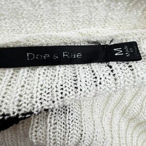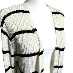 DOE & RAE Women Medium Cream Black Stripe Long Open Cardigan Sweater Ribbed Knit