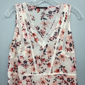 DOE & Rae Lace Detail Floral V-Neck Tank Top Sheer Blouse Women’s S Cream Pink