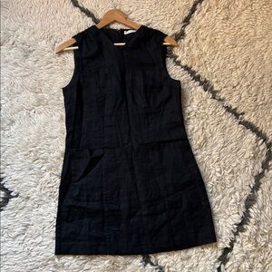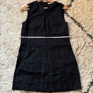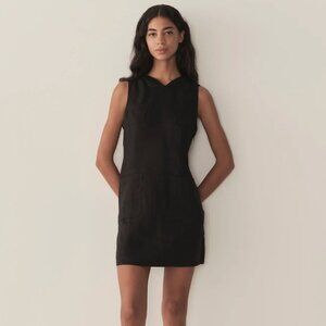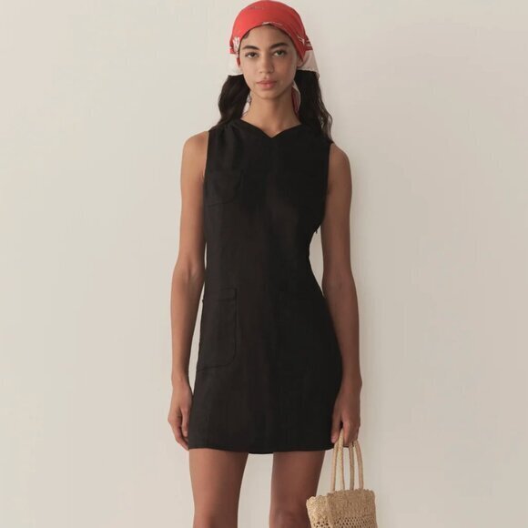 Tailored in soft, midweight linen, the Bennette is a ‘60s-inspired mini shift dress with a high V-neck, a subtly nipped-in waist, and a hem that falls just above mid-thigh. Light shirring at the shoulders lends subtle volume, and a hidden mother-of-pearl button fastens at the back neck. Patch pockets detail the chest and waist, and an invisible side zipper offers the perfect fit.