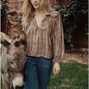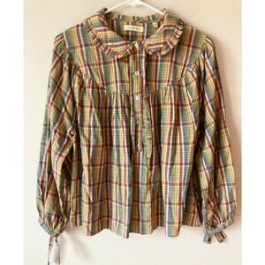 DOEN Billie Jean Top in Rainbow Plaid Print S