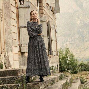DOEN Hawthorne Maxi Dress Floral Printed Ruffle Long Sleeve Beach S NWT