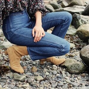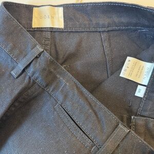 The Dôen Lena Jean is a classic high-rise straight leg denim. The silhouette stays sleek with a single welt coin pocket at the waist and shield pockets at the back, with a zip fly closure topped with a traditional copper shank button. In true vintage style these jeans have very little stretch to them, and are cut to be very form-fitting. Made in USA.