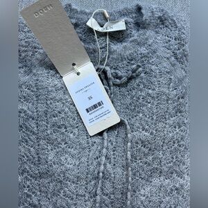 NEW with tags Reasonable offers welcome that are close to the selling price. Taking cues from 'os knitwear, the Ophira Sweater is crafted from a semi-sheer, lightweight wool-alpaca blend with an intricate allover pointelle design, featuring a classic crew neck, full-length raglan sleeves, and an antique-inspired delicate tie detail at the neckline. Lightweight and airy — perfect for transitional seasons or styled under a dress, over a silk or lacy camisole, or layered beneath a blazer, suede, or leather jacket. Neutral gray makes it endlessly versatile for denim, skirts, or trousers. 48% Nylon, 39% Wool, 13% Alpaca Doen Ophira sweater, pointelle knit sweater, semi-sheer alpaca wool blend, lightweight fall sweater, romantic knitwear, vintage inspired sweater, delicate tie neck top, feminine knit blouse, bohemian fall style, Parisian chic knit, layering sweater, neutral knit top, gray knit pullover, crew neck raglan sleeve sweater, cozy fall fashion, Doen knitwear