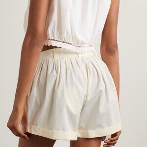 DOEN Paige pleated organic cotton-poplin shorts in color Salt NWOT Size 8