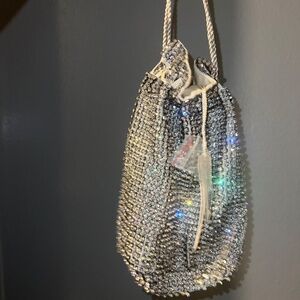 Drawing inspiration from the beaded Art Deco evening pochettes of the ‘20s, the DOÊN Heirloom Friday Pochette is a shimmering statement piece that looks right at home on the dance floor. Lovingly handmade in India and large enough to fit your phone, wallet, keys, lipstick and other essentials, it features allover rhinestone embellishments, a luxurious dove gray satin lining, and tassel-trimmed braided silk cord straps that can be draped elegantly over your wrist.