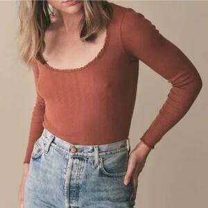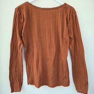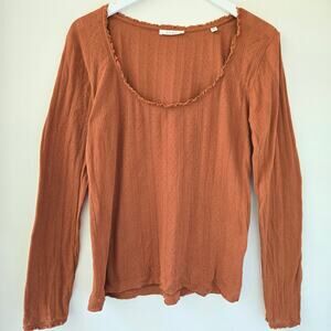 DOEN Romy Buckeye Orange Pointelle Knit Ruffle Scoop Neck Long Sleeve Shirt XXL