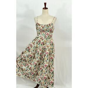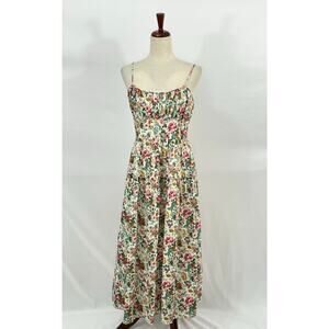 Women's dress by DOEN. Size M Medium. Benoit dress liberty rose romance. Floral midi dress, spaghetti straps, side zip. Good condition, no stains, holes or pilling. Straps have possibly been let down. I am not sure if they were tacked originally or not. Seem a little long and there is a little bend in the strap. So if you want them shorter you would need to have the straps hemmed. They are 8 inches long measured from shoulder, so 16 total if doubled