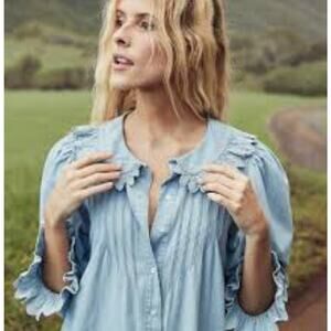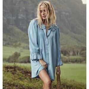 DOEN Wing Mini Dress in Parisian Chambray Blue XS
