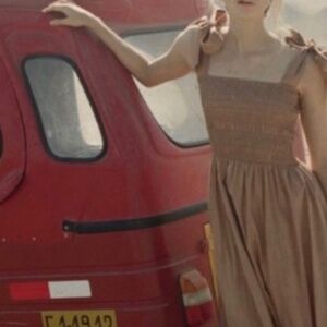 Doen’s maxi dress is more of a beautiful burgundy ~ light, airy. Machine wash cold with like colors. So feminine, Worn once. Beautiful condition.