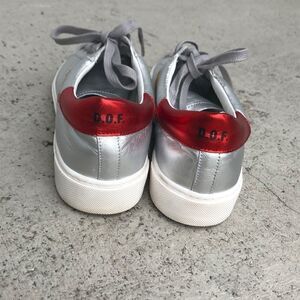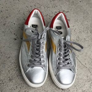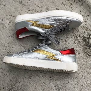 These sneakers are silver gold and red. They are in good condition. Check out the pictures, have a little wear on the inside. They are fantastic looking.