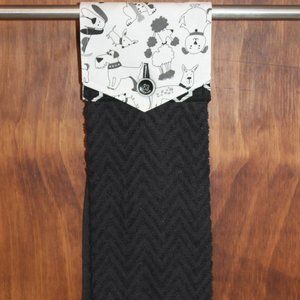 DOG COLLAGE BLACK & WHITE HANDMADE HANGING TOWEL BLACK COTTON HAND TOWEL