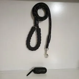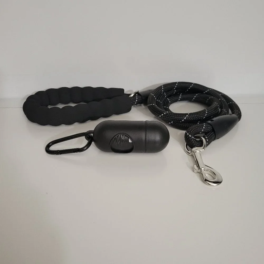 Gorilla Grip Heavy Duty Dog Leash, Soft Handle, Strong Reflective Rope for Night Pet Walking, Small Medium Large Dogs, Durable Puppy Training Leashes, Rotating Metal Clip, Waste Bag Dispenser, Black. 4-1/2 ft. New.