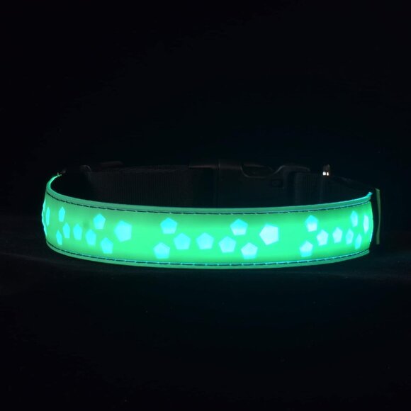 DOGLED Flashing LED Dog Collar Medium Green Fits 15.7-19.7" Neck NEW Pentagon