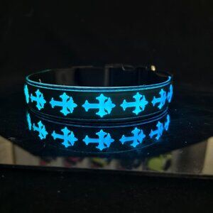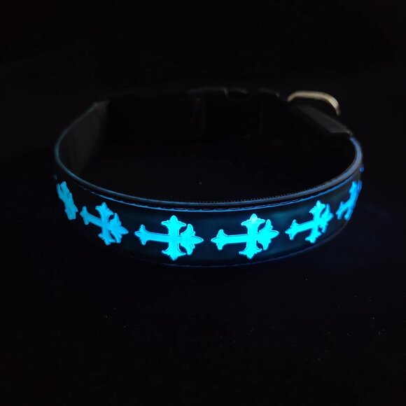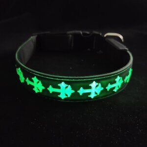 DOGLED Flashing LED Dog Collar Small Black 3D Cross Fits 11.8-15.7" Neck NEW