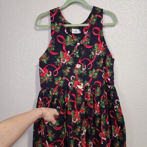 DOGWOOD LANE Holly Candy Cane Christmas Jumper Dress Pockets Ceramic Buttons M